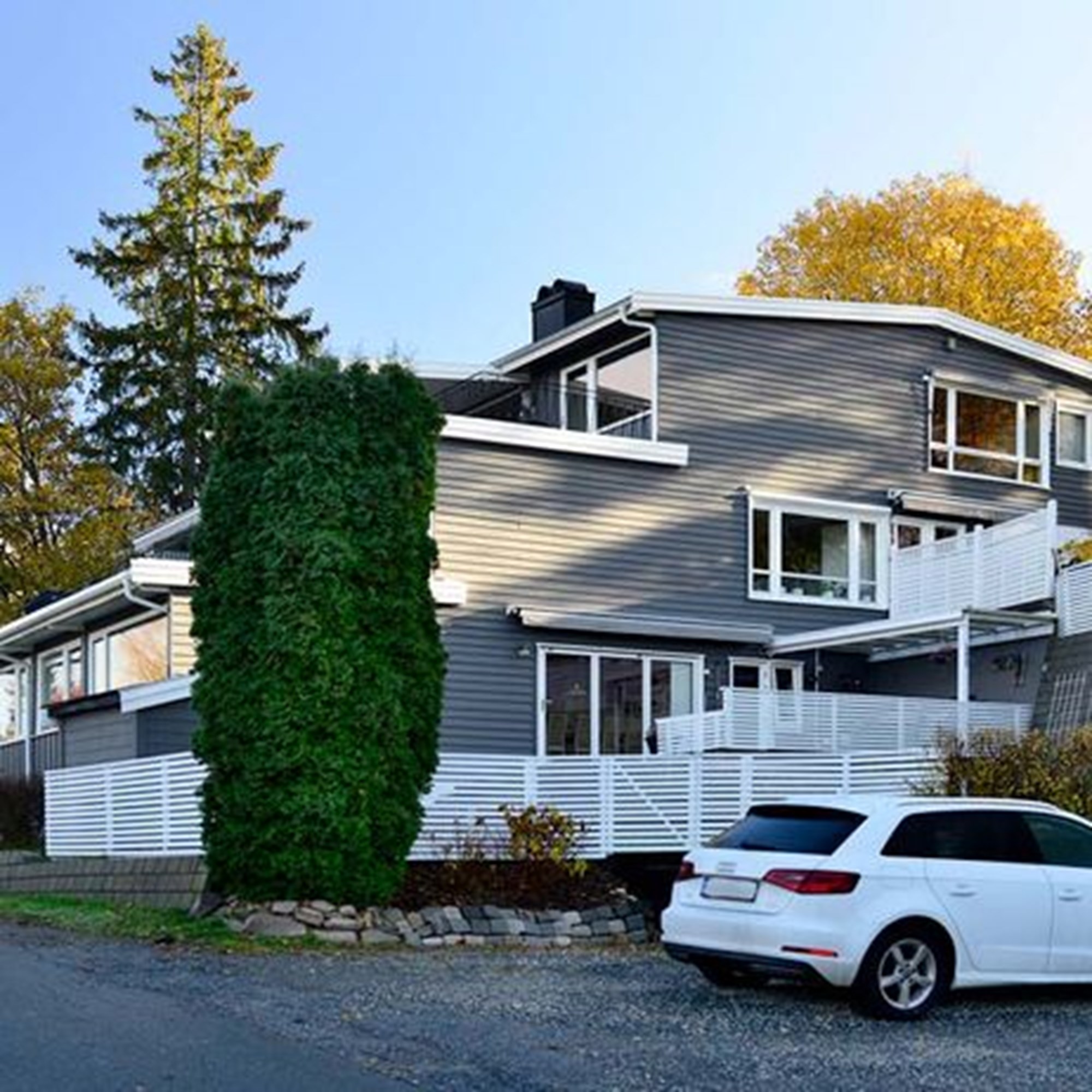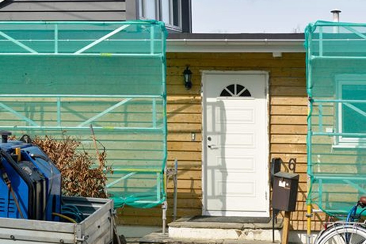 Prosjekt: Kjemisk rens, utskifting av råteskader og oppmaling av 11 stk. rekkehus.